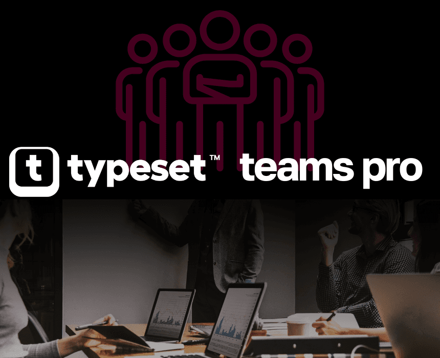 Typeset Teams Pro is a discounted multiseat subscription package available for $75/month or $750/year for three users. Additional users above three can also be added at a discount. All contacts added as part of a Typeset Teams Pro subscription will have individual accounts plus access to a shared workspace and branded themes. Onboarding is built-in for new users, so your team can be set up and trained in minutes. Sign up today for Typeset Teams Pro to get discounted access to Typeset for multiple users.